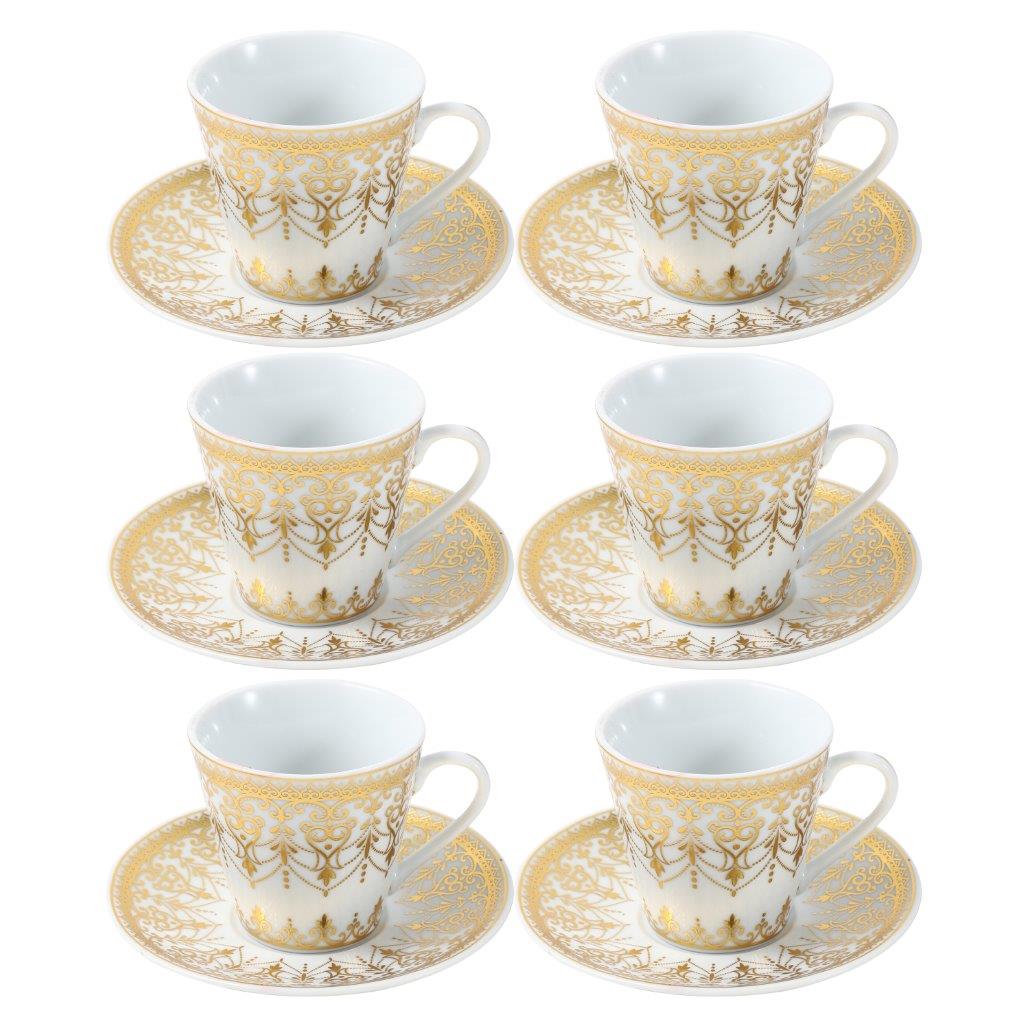 Ceramic Coffee Cup and Saucer Set of 6 Pcs Abstract Print Design 85CC/11 cm