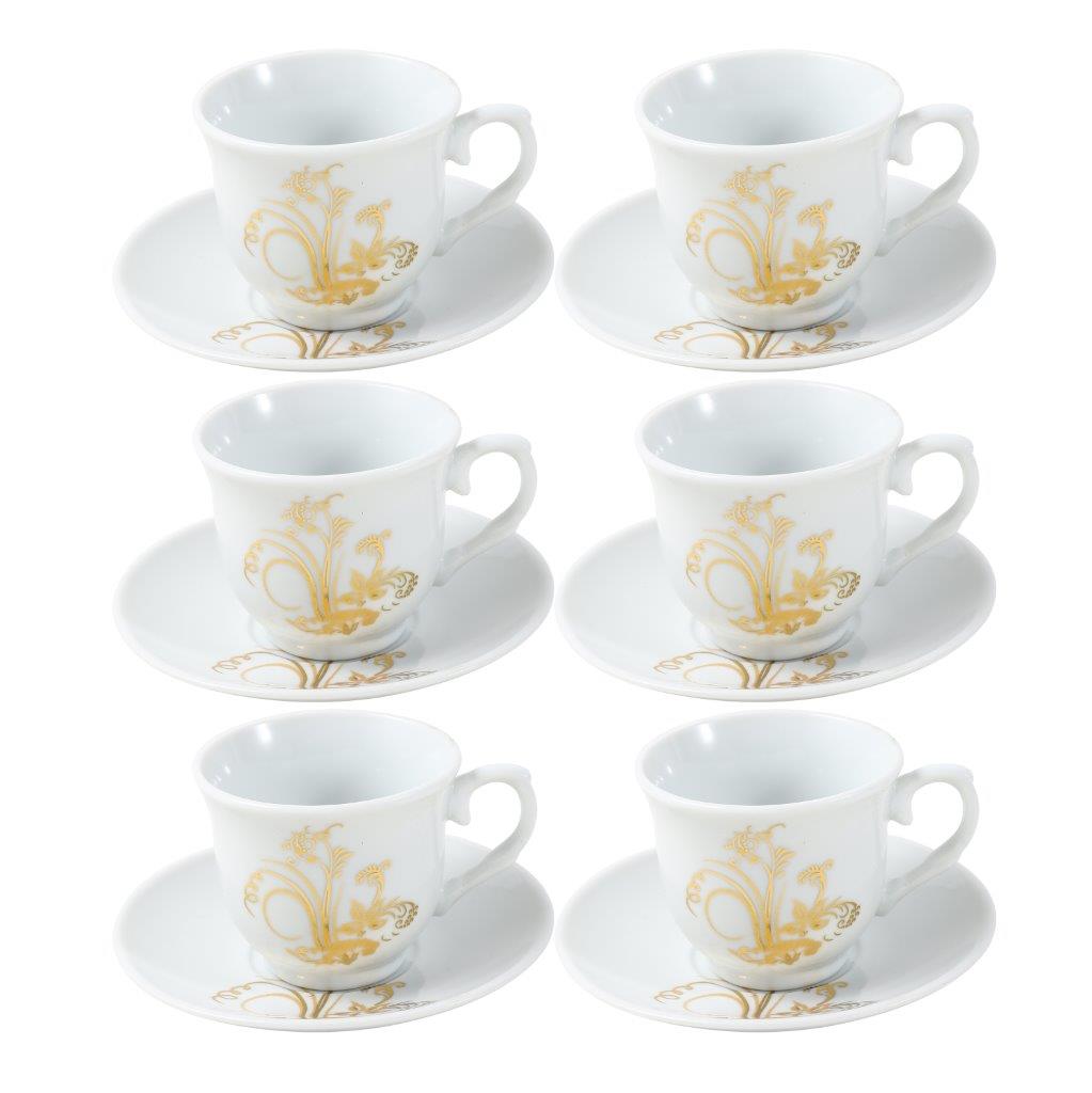 Ceramic Coffee Cup and Saucer Set of 6 Pcs Abstract Print Design 85CC/11 cm