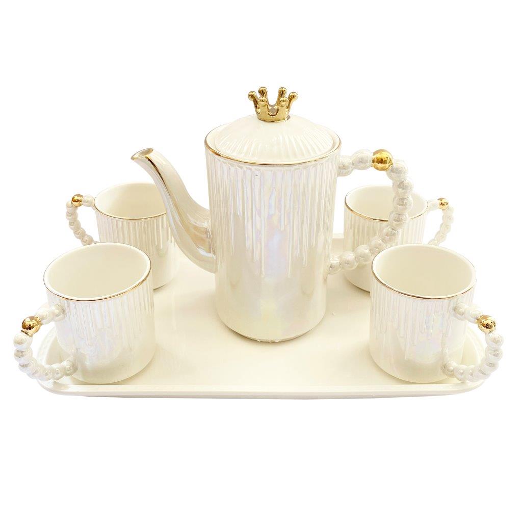 Ceramic Tea Cup with Kettle and Serving Tray Set of 8 Pcs ** 7.5*9/21*11/23.5*40.5 cm