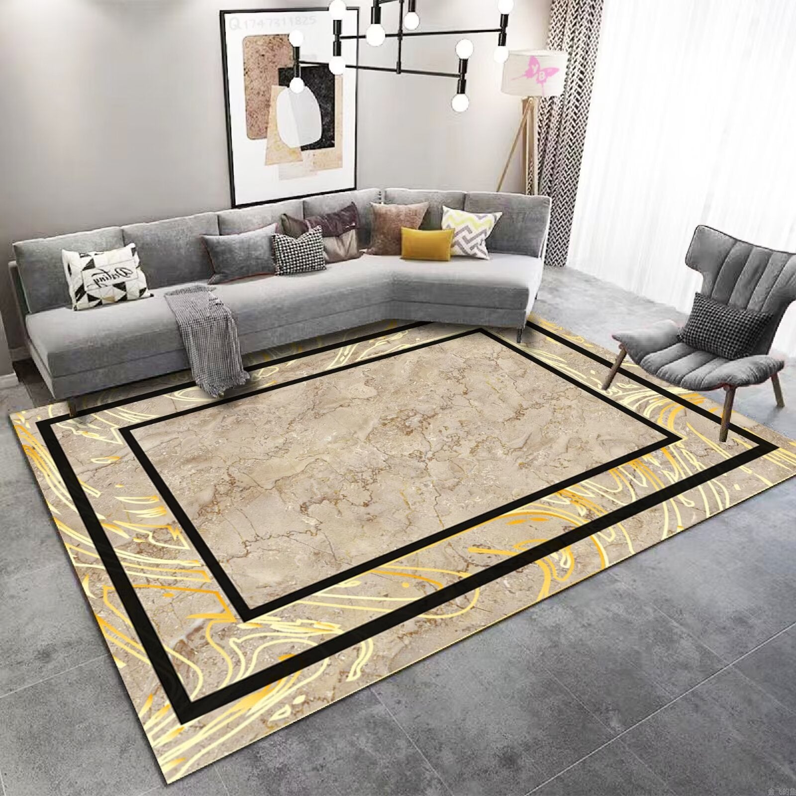 Custom Luxury Fashion Machine Woven Indoor Area Rug Carpet Elegant Beige with Funky Colors Border 200*300 cm