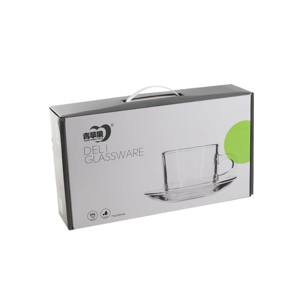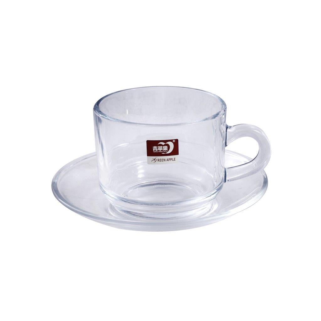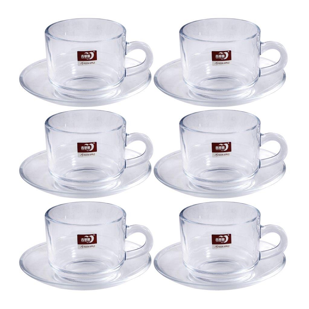 Glass Treo Mug Style Tea Cup with Saucer Set of 6 210 ml
