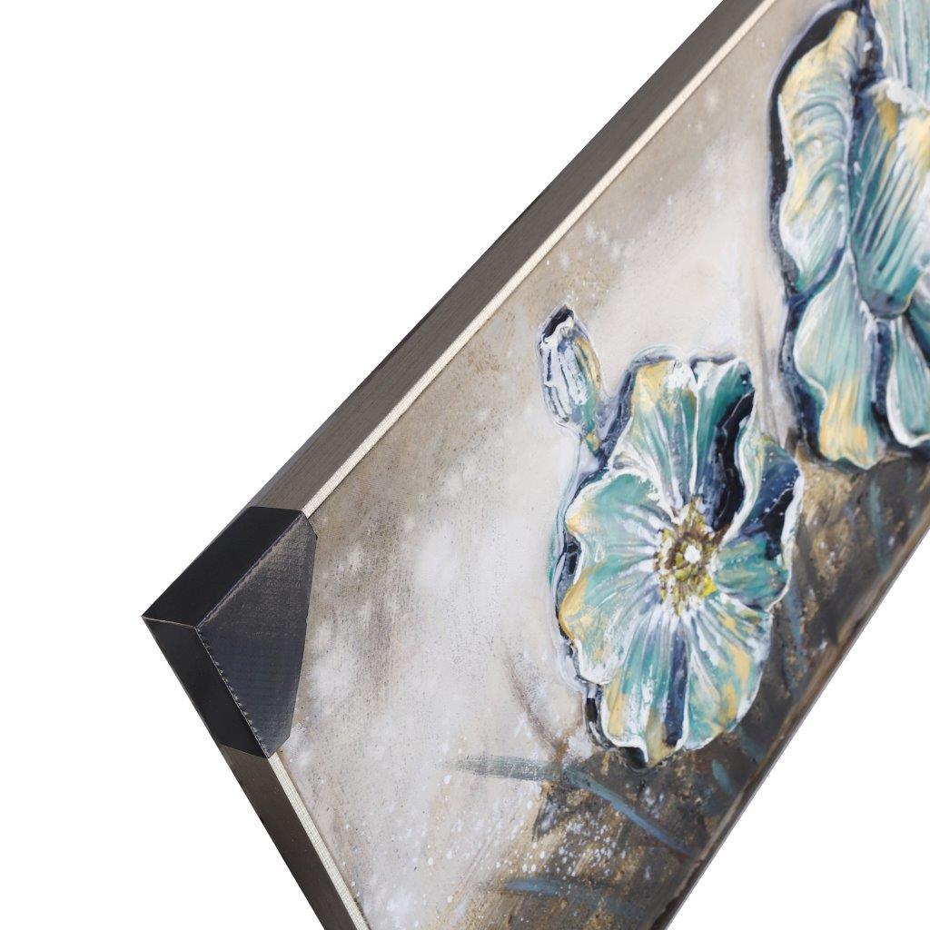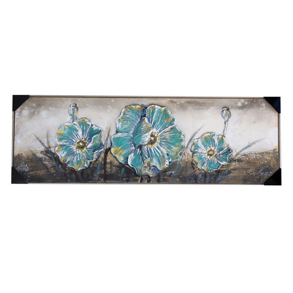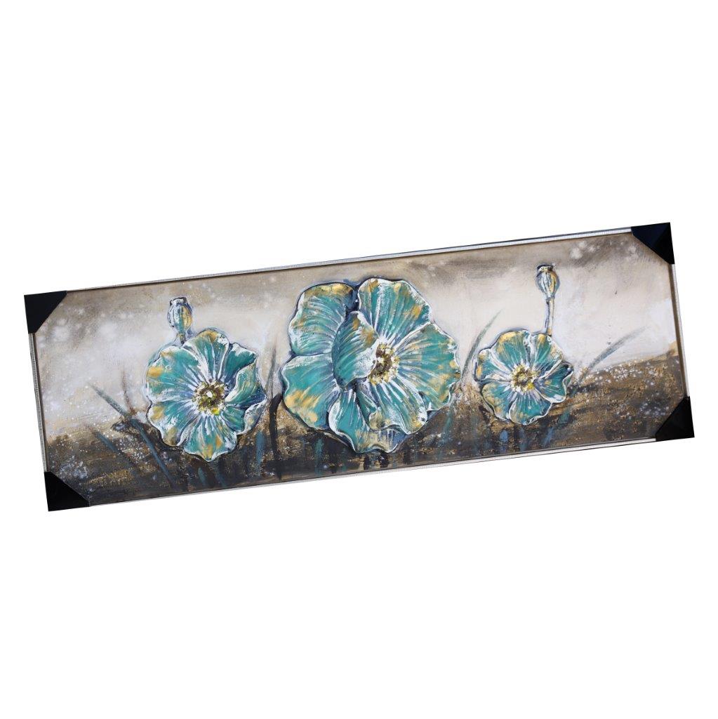 Home Decor Landscape Canvas Wall Art Abstract Turquoise Floral Oil Painting PVC Frame 50*150*3.5 cm