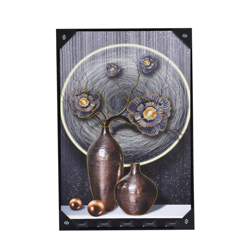 Home Decor Portrait Canvas Wall Art Abstract Flower Vase Oil Painting Picture Frame 62*92 cm