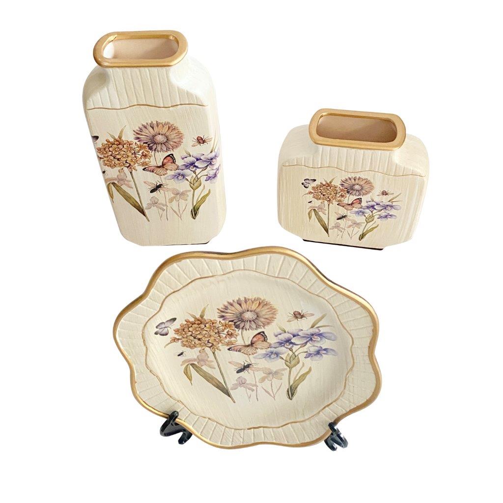 Home Decor Table Top Abstract Print Ceramic Vase Set of 3 Pcs 16*16/12*25/21.5 cm