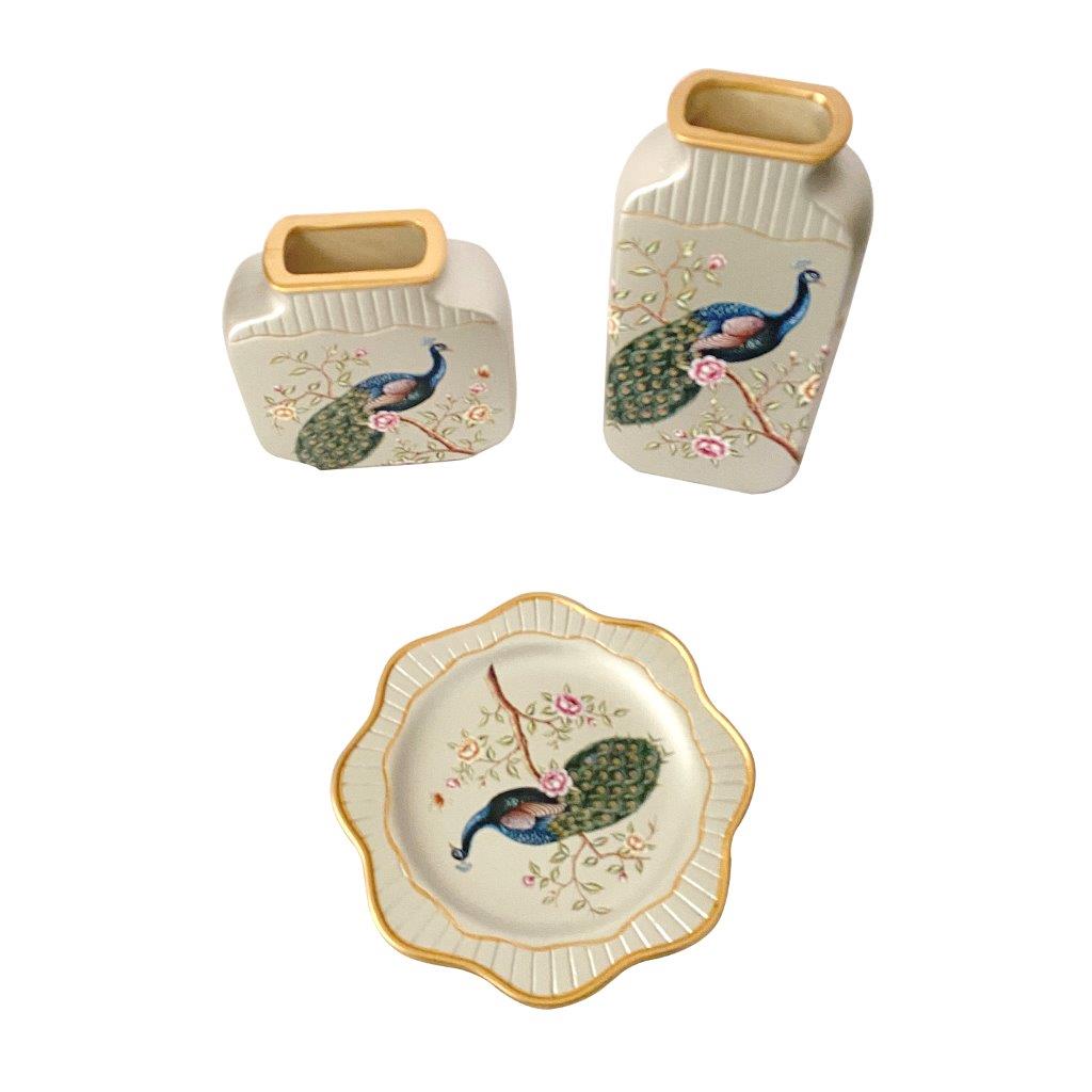 Home Decor Table Top Abstract Print Ceramic Vase Set of 3 Pcs 16*16/12*25/21.5 cm