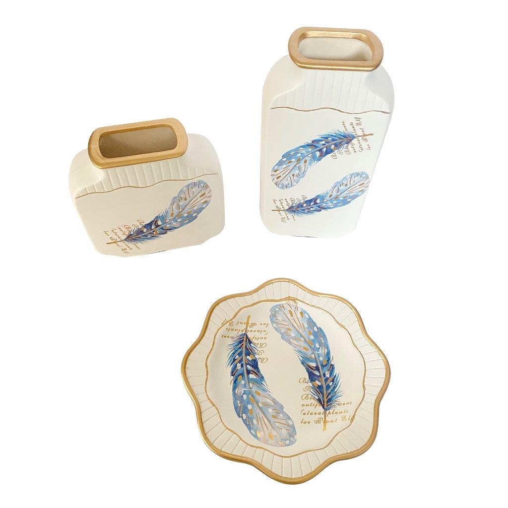 Home Decor Table Top Abstract Print Ceramic Vase Set of 3 Pcs 16*16/12*25/21.5 cm