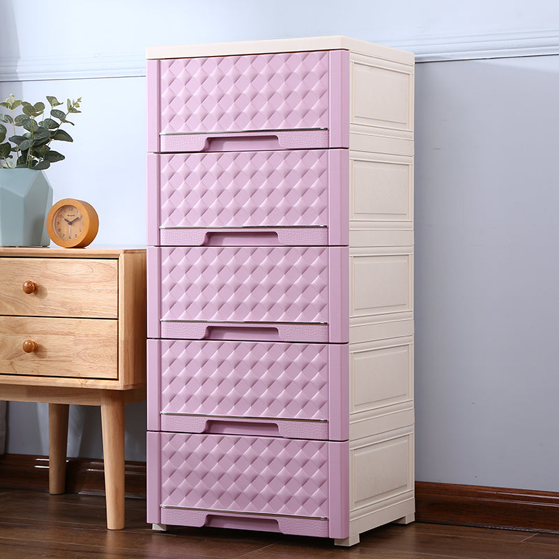 Multipurpose 5 Tier Modular Knockdown Drawer Storage Cabinet Pink 42*37*95 cm