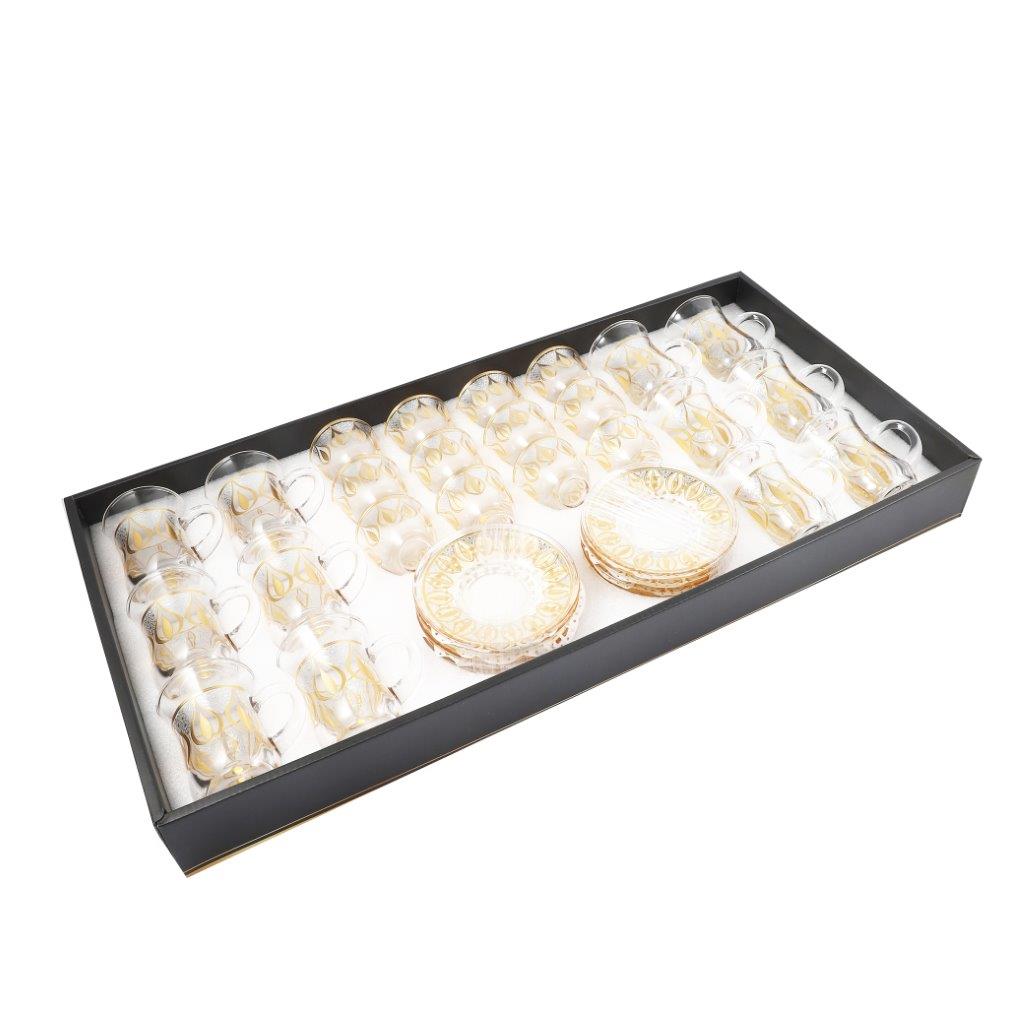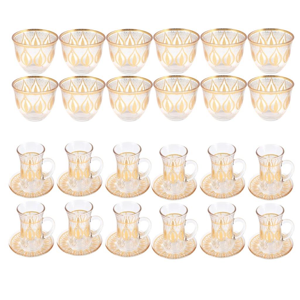 Moroccan Design Gold Drinking Glass Tea Cups and Saucer Set of 24 Pcs 11/6*5/6.5*9 cm **