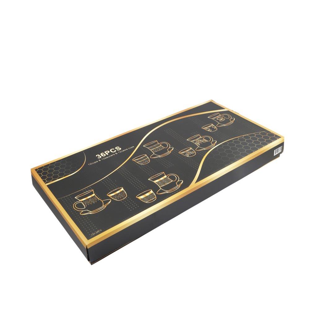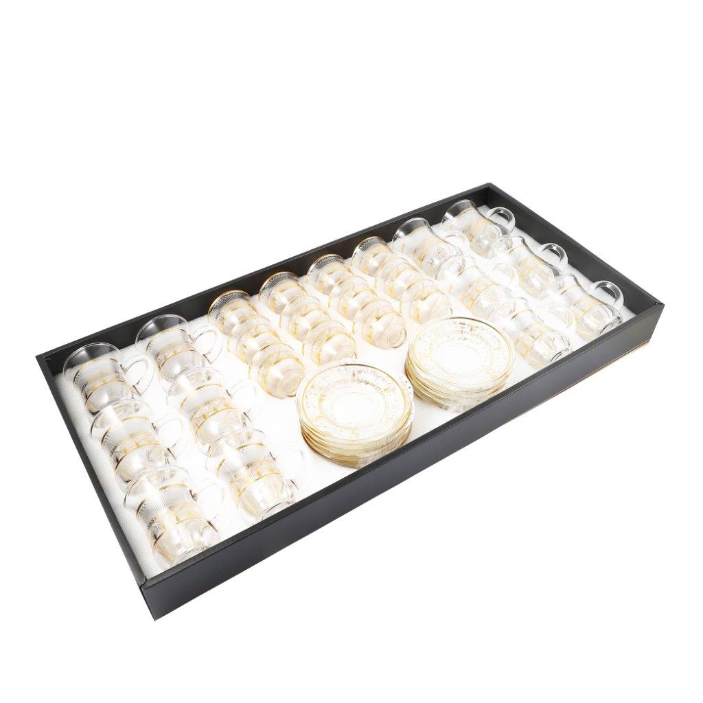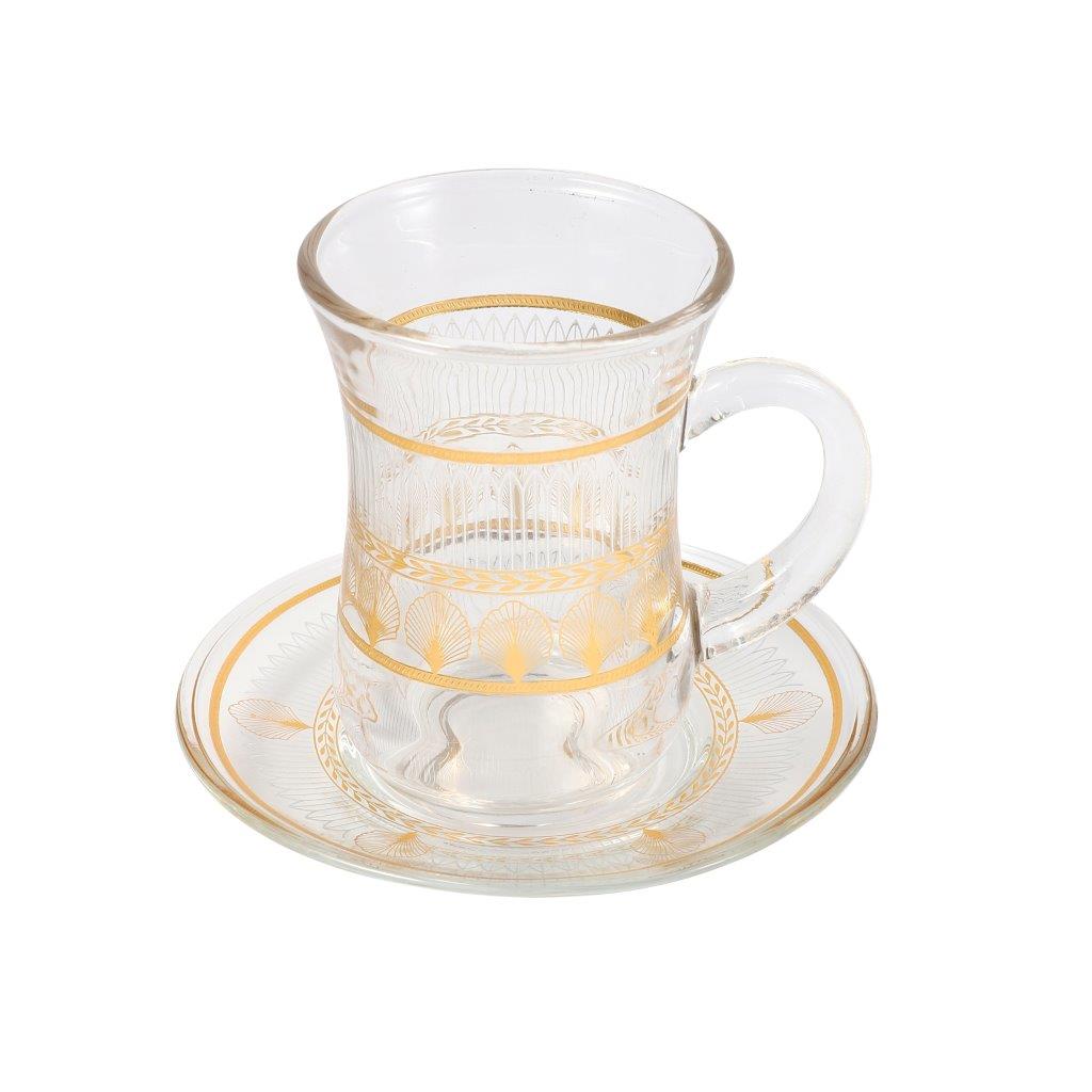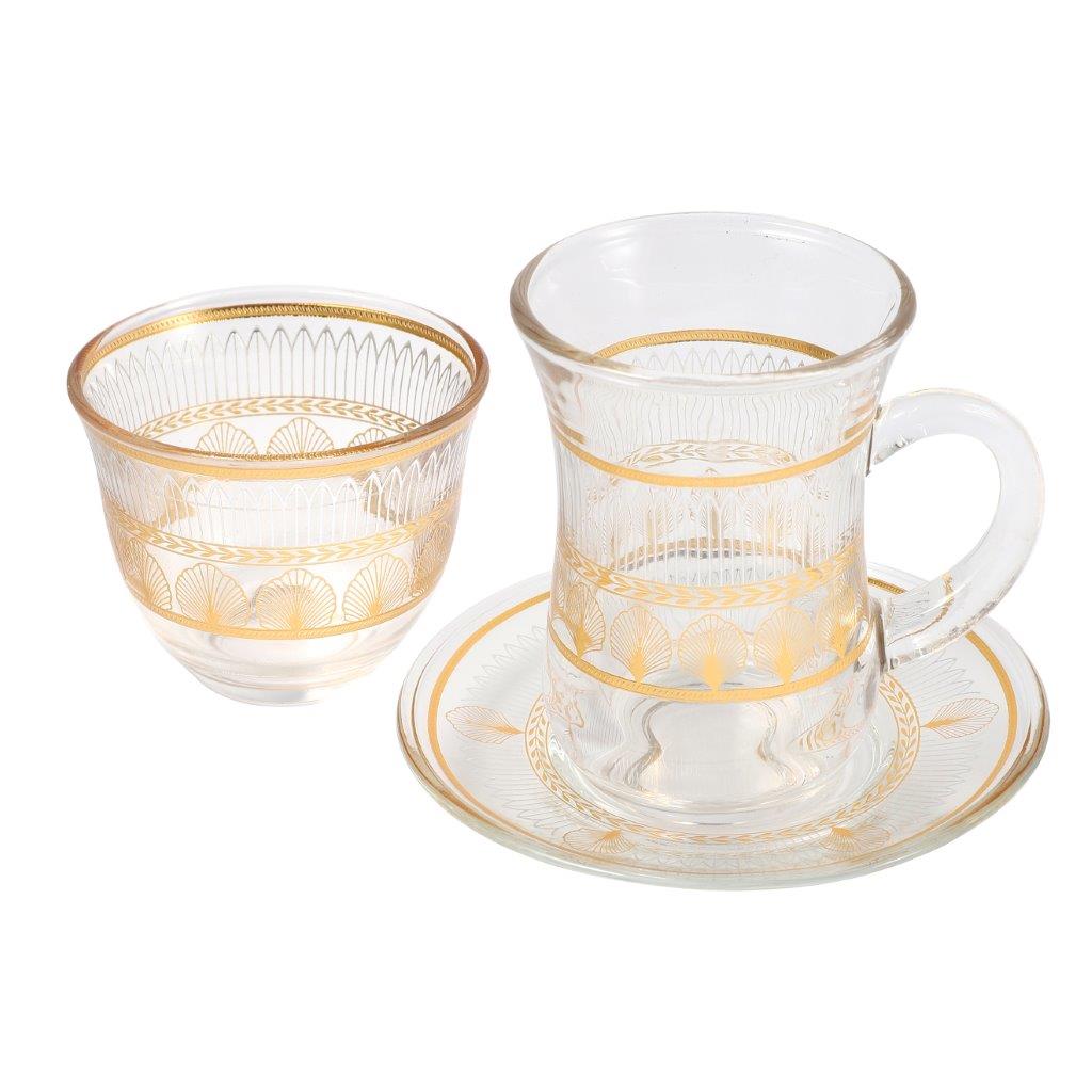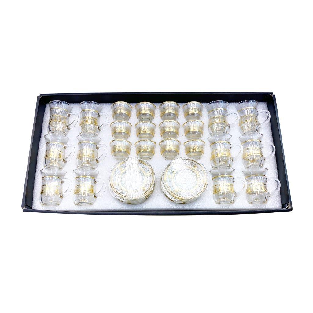 Moroccan Design Gold Drinking Glass Tea Cups and Saucer Set of 36 Pcs 11/6*5/6.5*9 cm **