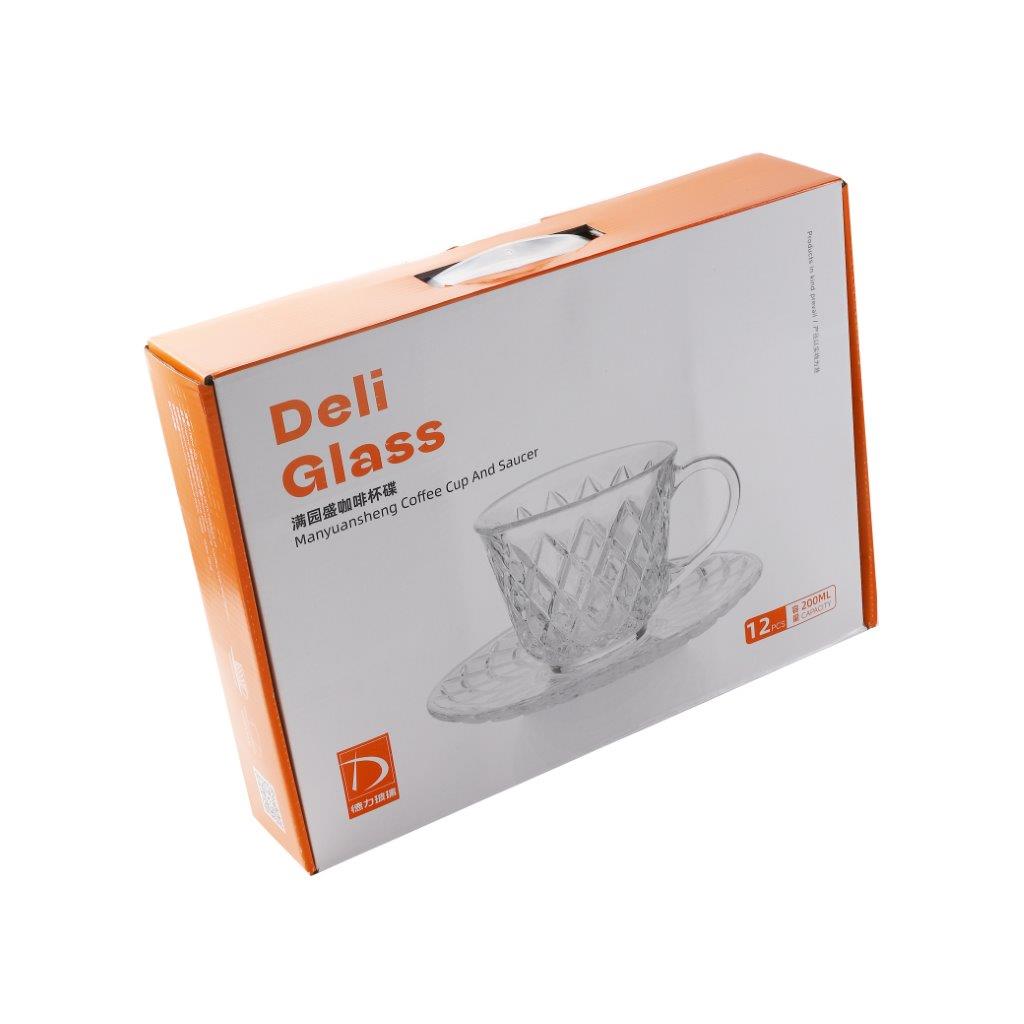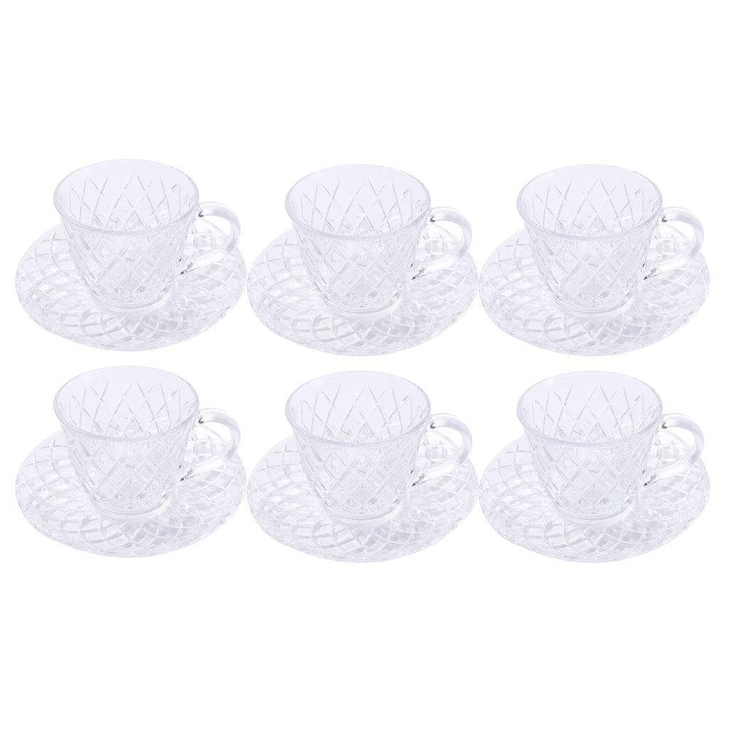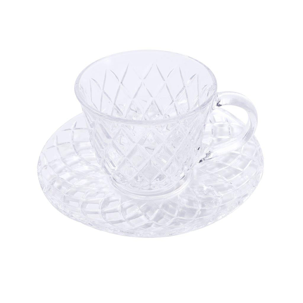 Premium Clear Glass Tea cup with Saucer Set of 6 Pcs 15/220 ml