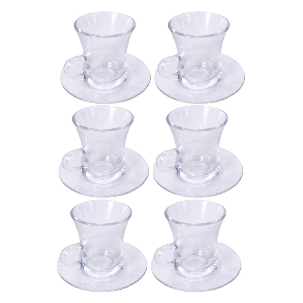 Premium Clear Glass Tea cup with Saucer Set of 6 Pcs 5*5.5/10.5 cm
