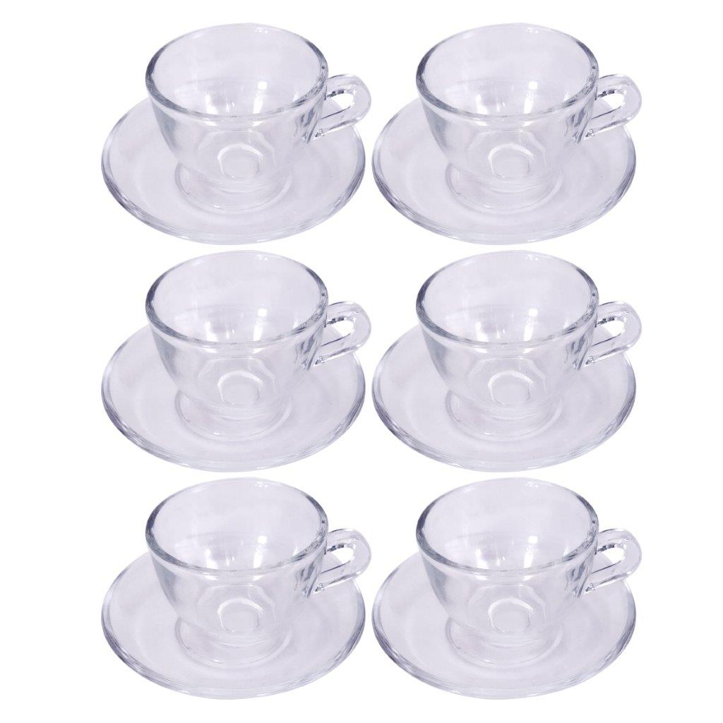 Premium Clear Glass Tea cup with Saucer Set of 6 Pcs 6*5.5/11 cm