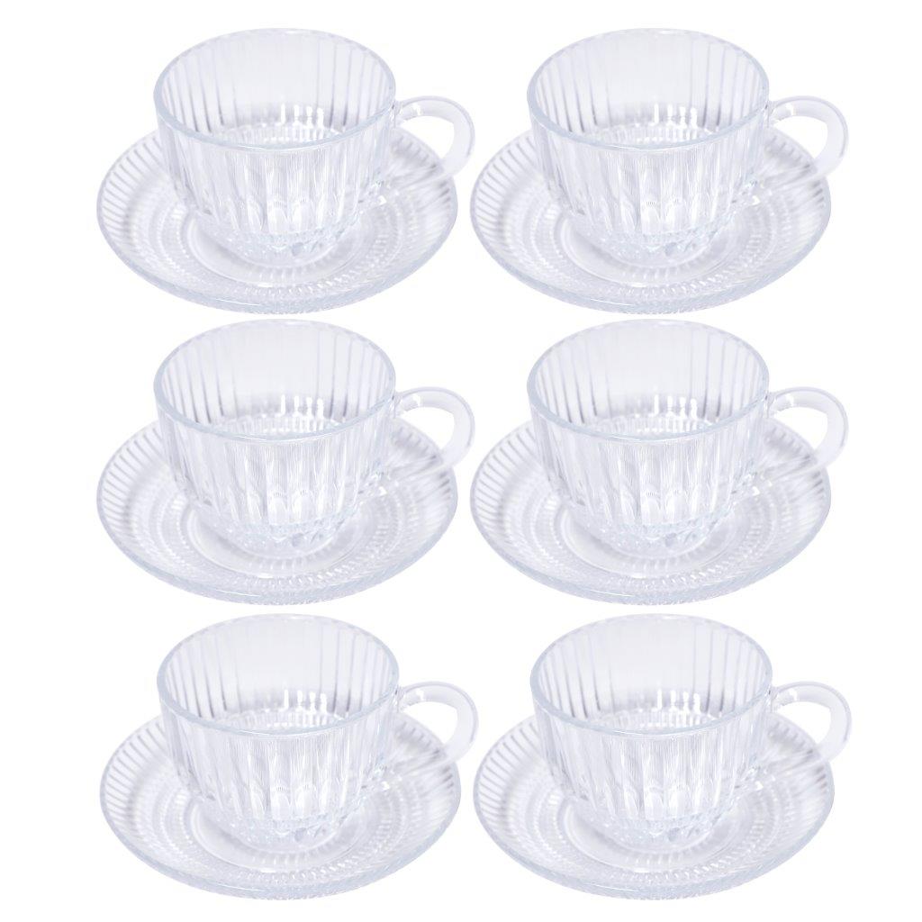 Premium Lead Free Glass Tea Cup and Saucer Set of 6 Pcs 24 ml/14 cm