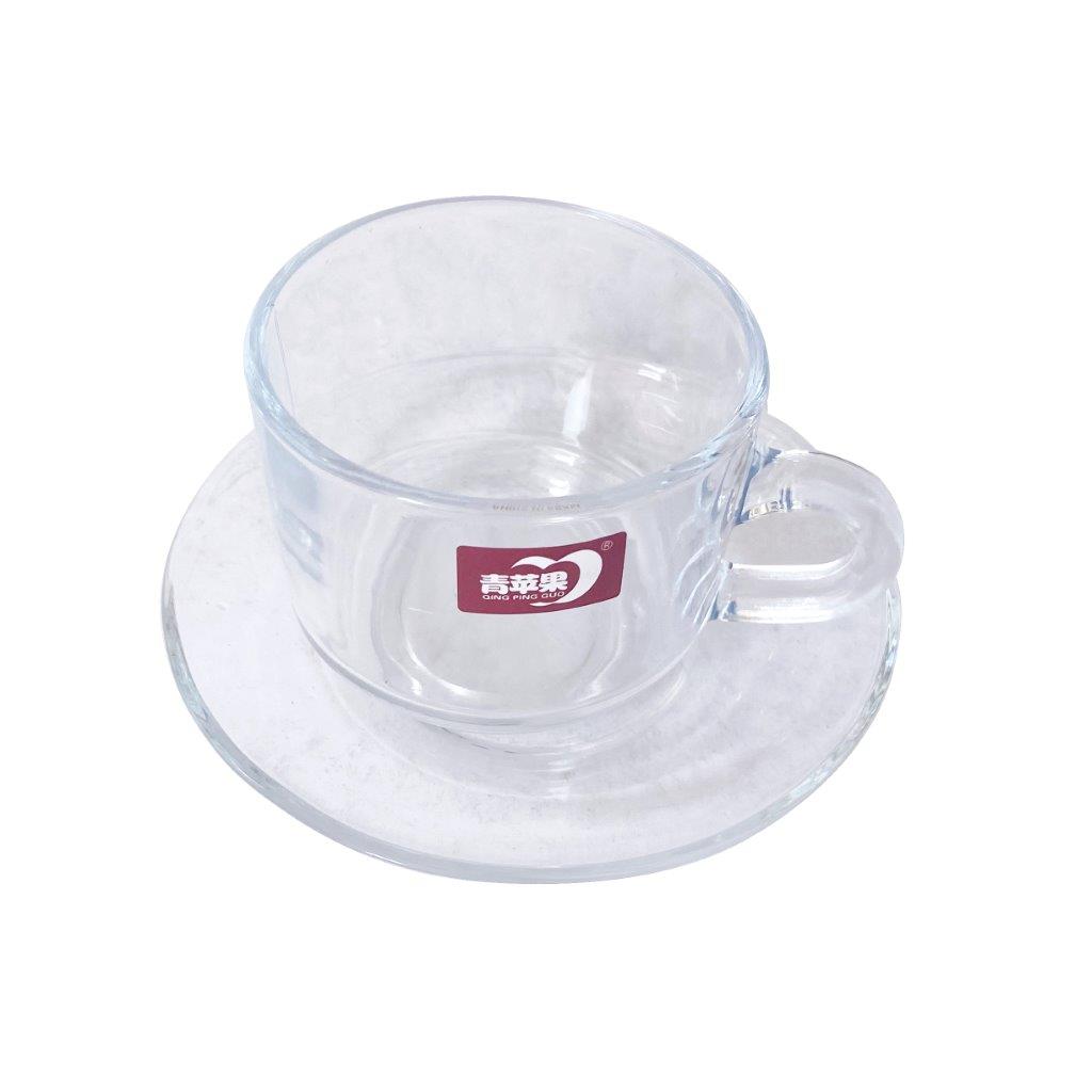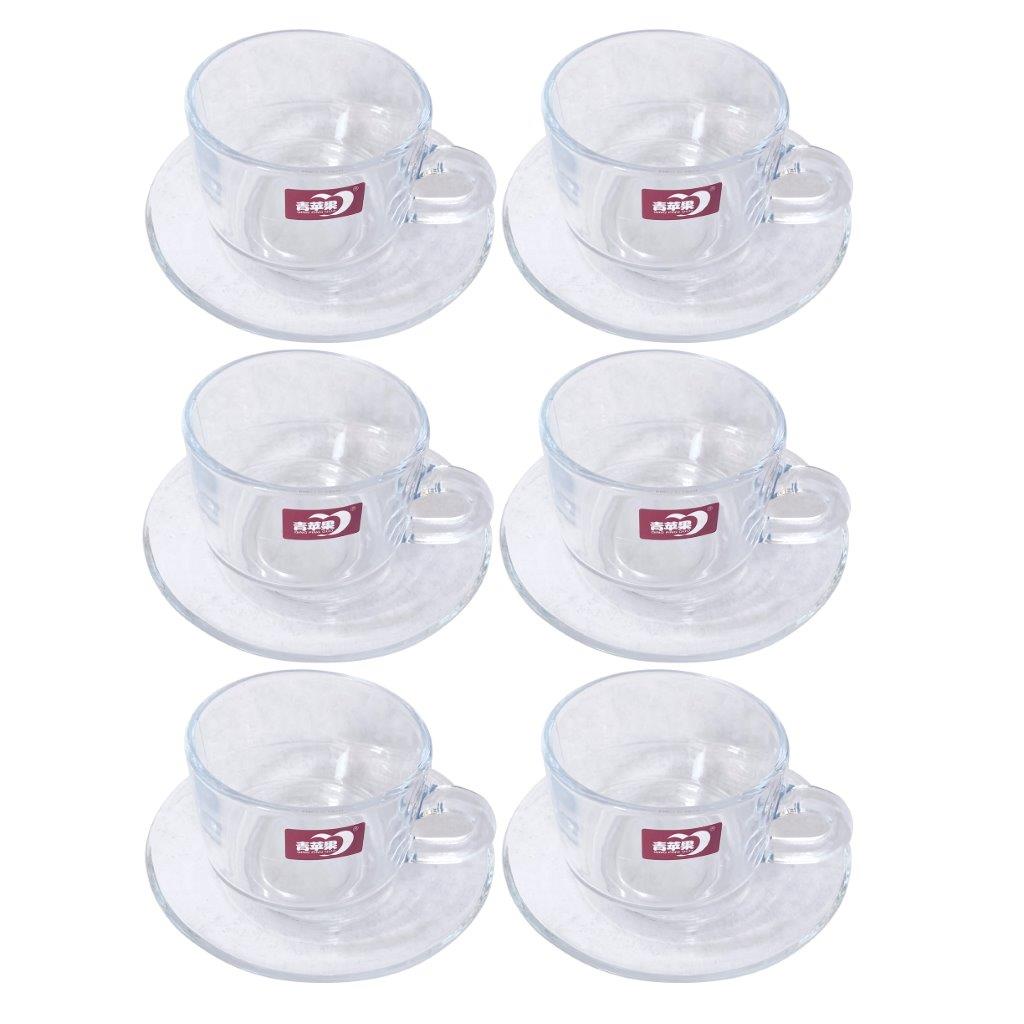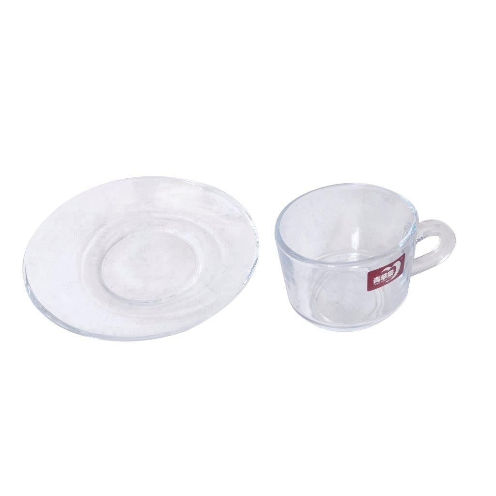 Premium Lead Free Glass Tea Cup with Saucer Set of 6 Pcs 8*6/13 cm