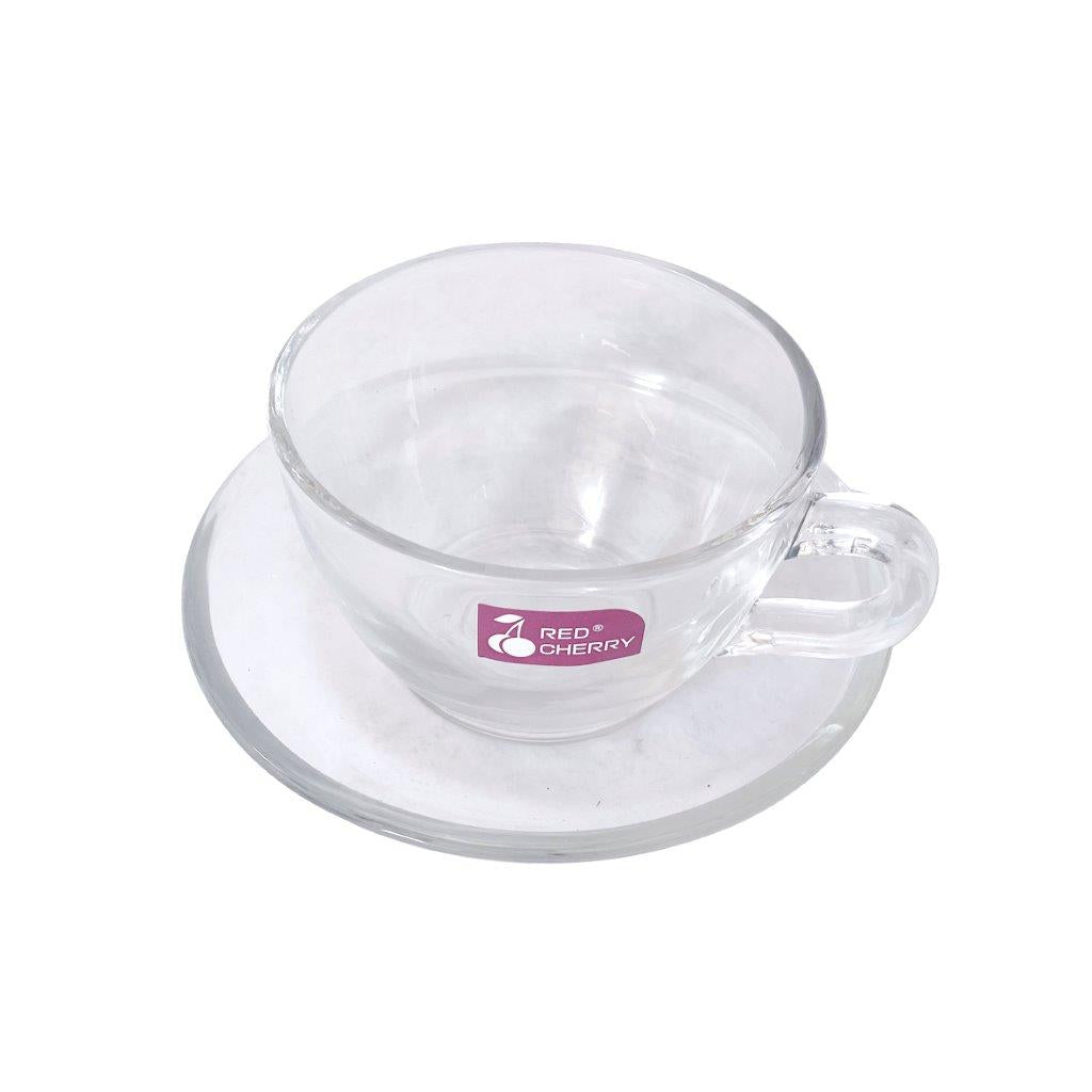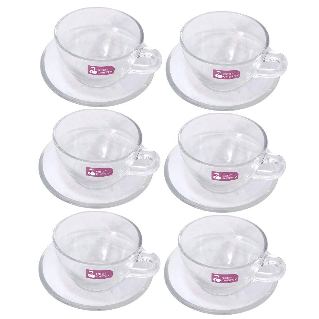 Premium Lead Free Glass Tea Cup with Saucer Set of 6 Pcs 9.5*7.5/13.5 cm