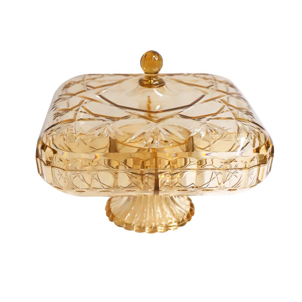 Premium Quality Footed Gold Acrylic Candy Box Snack Tray Condiment Storage with Cover 31X23 cm
