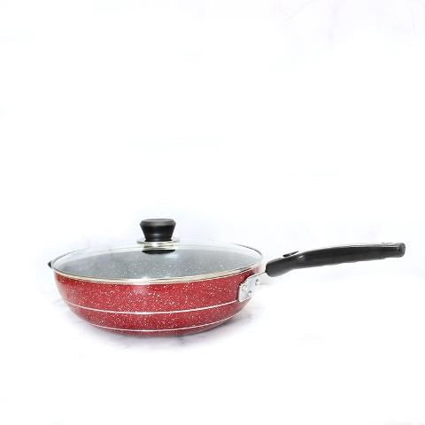 Wok Maroon Marble Coating Induction Induction Non Stick 30 cm 3.5mm with Glass Lid